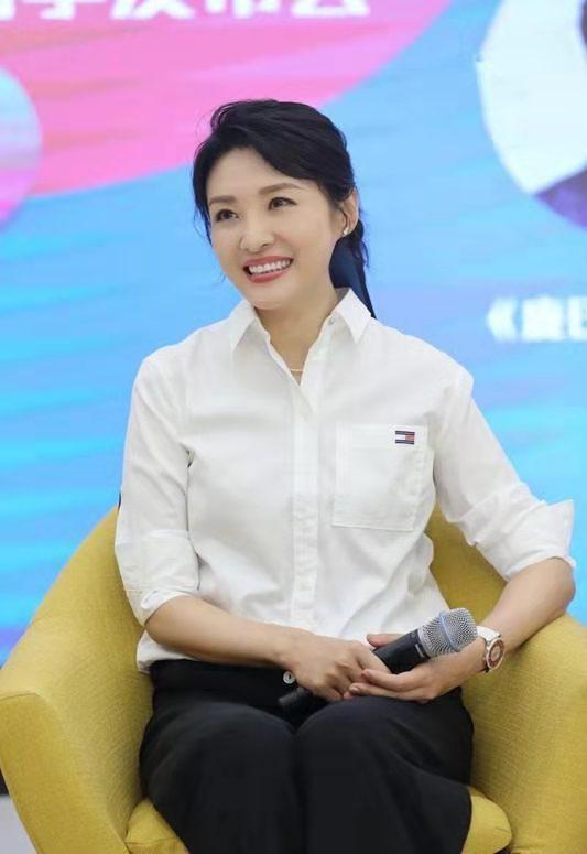 57岁周涛换大波浪嫩回37?白西装配阔腿裤这气质绝了!